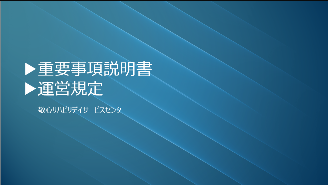 私たちが提供するサービスの「中身」を、包み隠さず公開しています。 ご家族やご自身の大切な時間を預ける場所だからこそ、運営のルール(運営規定)や、契約の根拠(重要事項説明書)を事前に確認しておくことは、何よりの安心につながります。